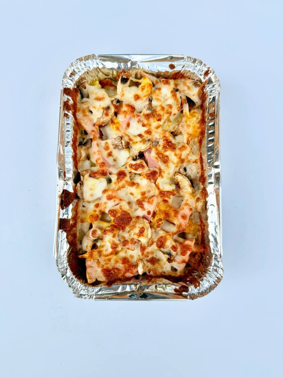 ۳۰۰ گرم سیب زمینی، قارچ ، پنیر پیتزا ، ژامبون ، پنیر کبابی