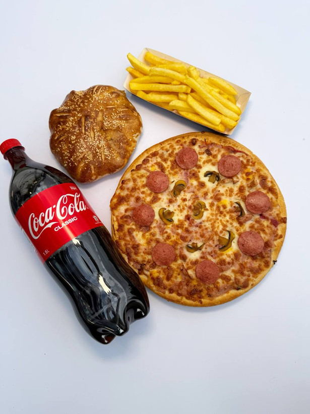 پیتزا ۳۰ سانتی مخلوط ، ساندویچ رویال برگر ، سیب زمینی ، نوشابه خانواده رایگان